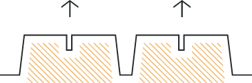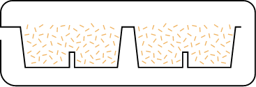 Every tray is filled in one direction, typically on the bottom because it is flat. The fill surface texture is rougher than the molded surface.
