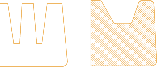 The draw ratio should be at least 1 unit wide by 1 unit tall. Avoid deep cavities.